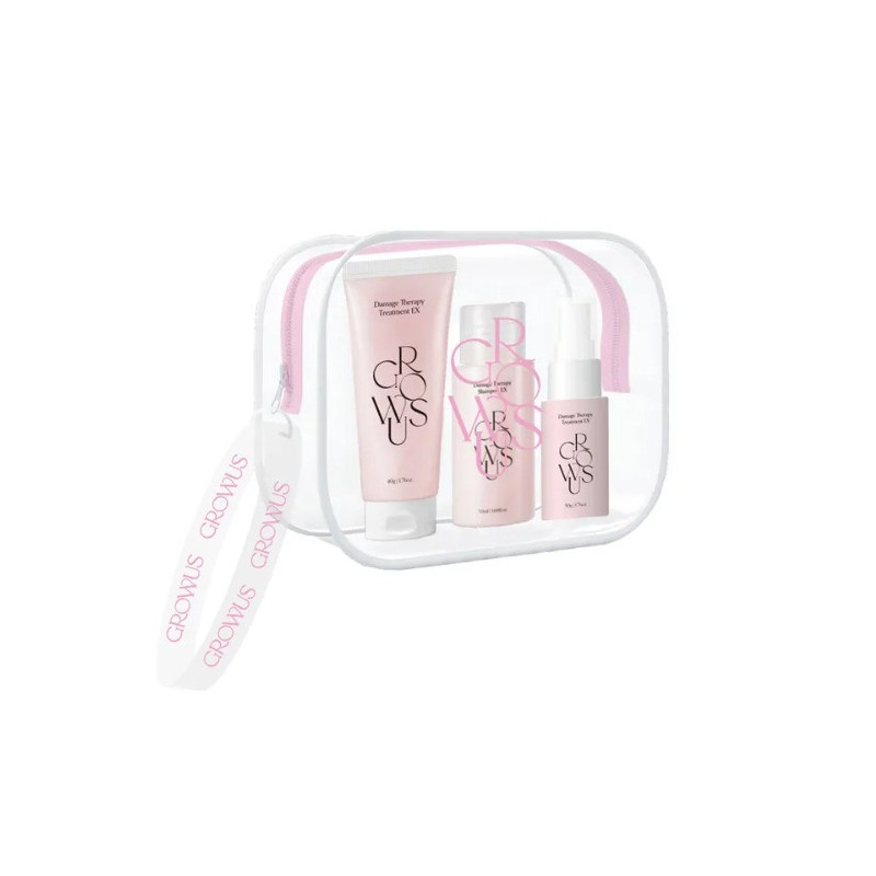 Kit de GROWUS con una rutina enfocada en hidratar cabello seco y dañado. Incluye: Shampoo 50ml +Treatment 45g+No wash treatment 28ml),