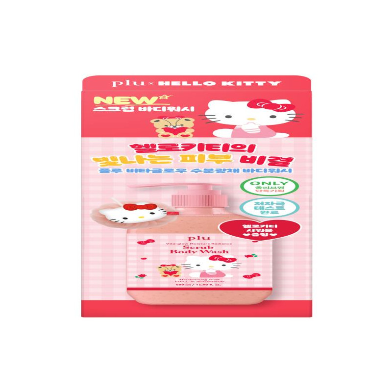 ¡Un limpiador corporal de edición limitada con Plu y Hello Kitty! Con notas de manzana verde, rosas y musgo, para remover piel muerta durante la limpieza y revelar piel suave y humectada.